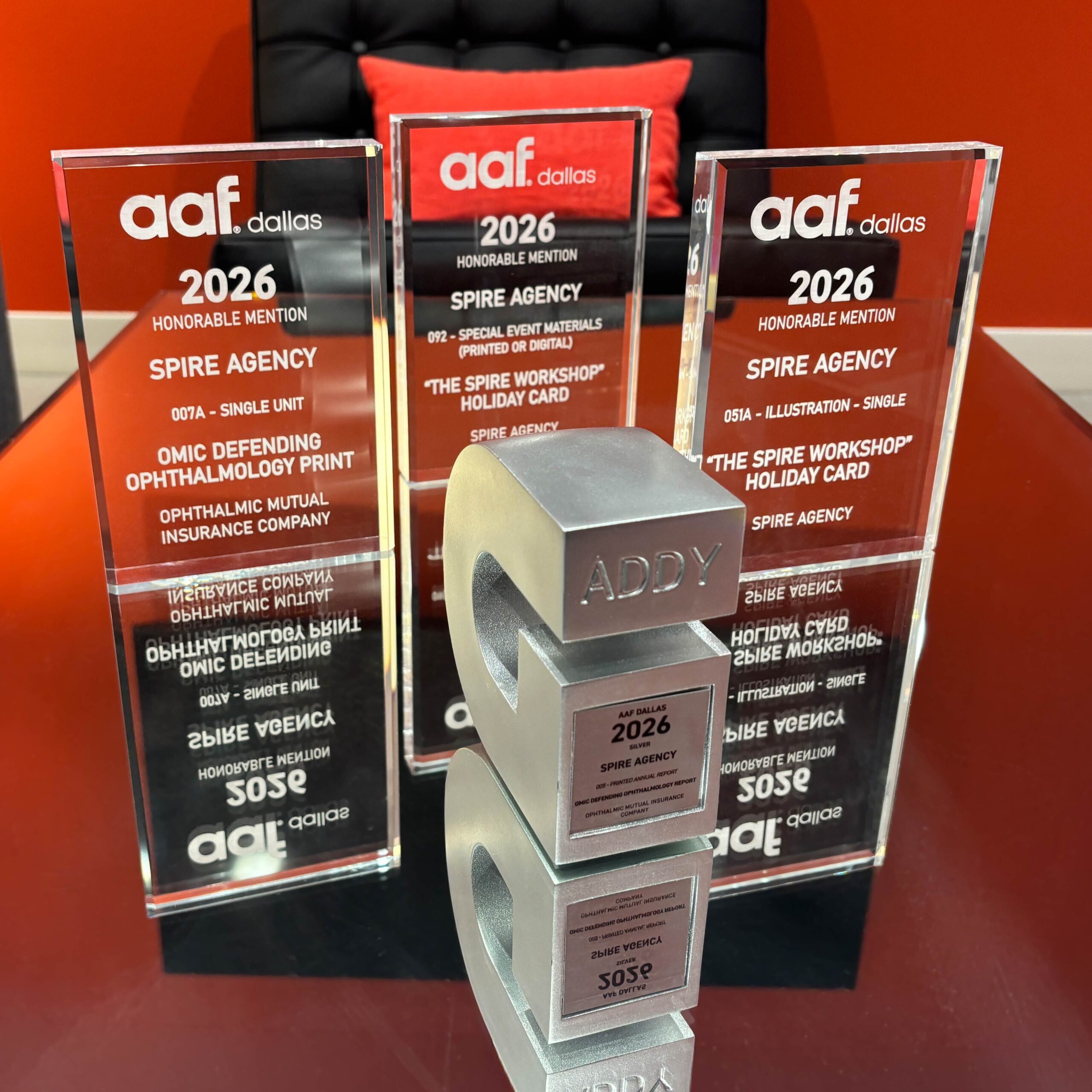 Spire is proud to be recognized by AAF Dallas with four American Advertising Awards, honoring work that reflects our commitment to thoughtful strategy, strong design, and meaningful client partnerships. Of the four awards, Spire received one Silver ADDY and three Honorable Mentions.
