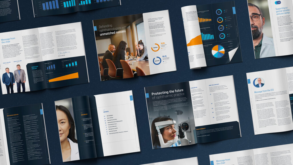 Spire’s work for Ophthalmic Mutual Insurance Company (OMIC) earned two awards. The winning work was for a 20-page Member’s Report that was designed and produced by Spire. This flagship piece serves as a key communication to its members, reflecting the organization’s stability, purpose, and stewardship. For the latest edition, the goal was to modernize the report’s look and feel, moving away from dated layouts and generic stock imagery toward a more cohesive, contemporary visual expression of the brand. The entire report was awarded a Silver ADDY for Printed Annual Report and an Honorable Mention in the Brochure category.