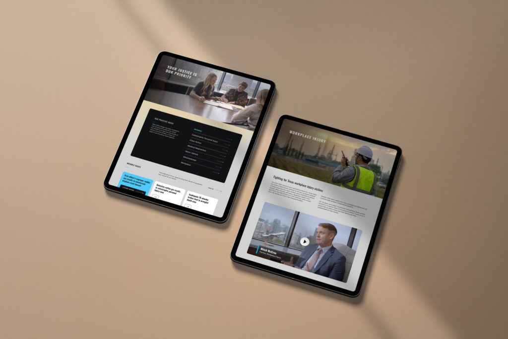 Visually, we established a bold, distinctive look and feel. Dynamic imagery ties to real casework, helping users quickly connect with the firm’s expertise in multiple fields.