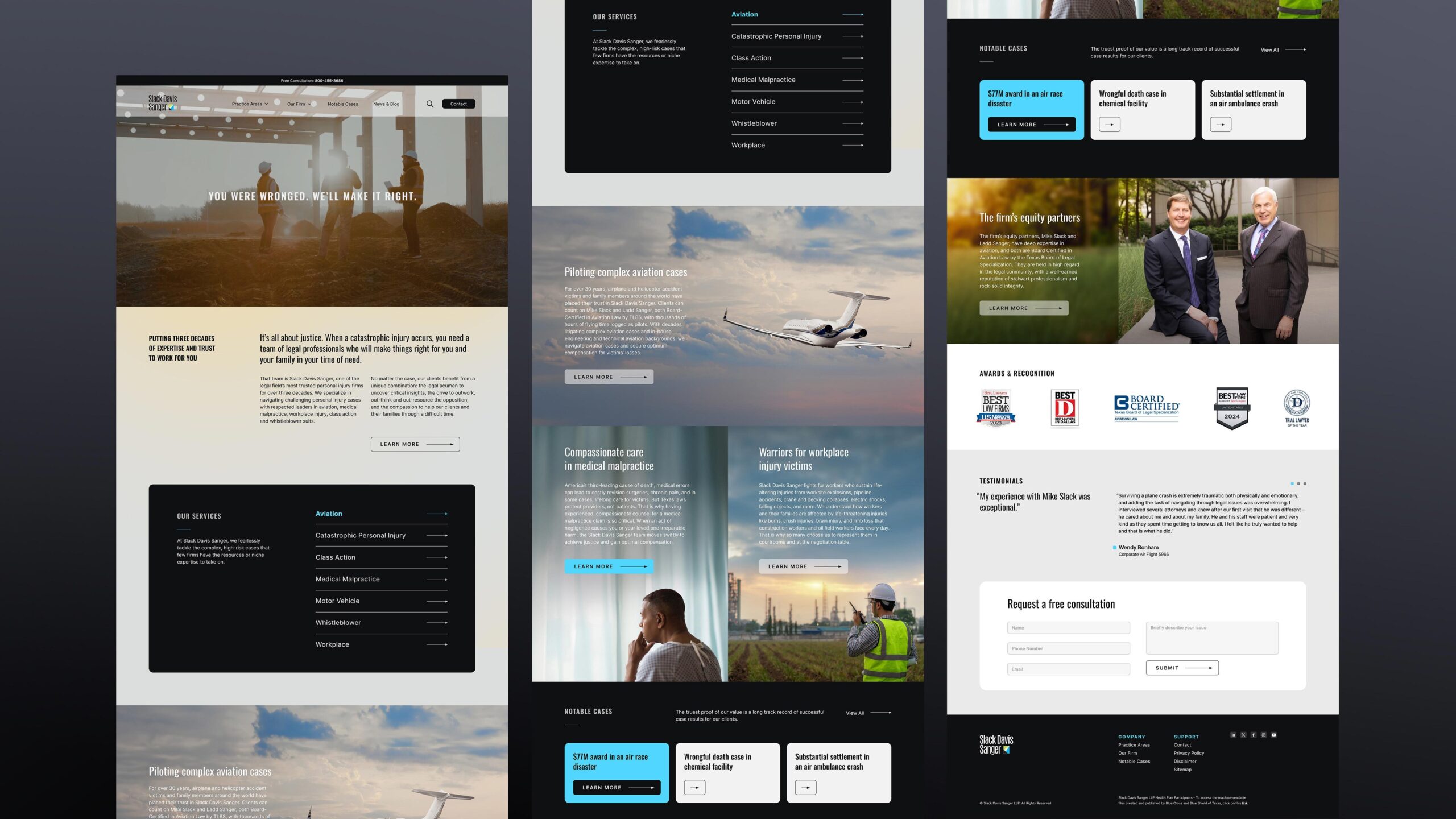 With 30 years of experience, Slack Davis Sanger (SDS) is a respected personal injury law firm known for taking on the complex cases others can’t. Yet despite a strong track record across numerous practice areas, SDS had become primarily recognized as an aviation boutique—due to the high visibility of its aviation litigation work. The firm set out to shift that perception and spotlight its full range of expertise.