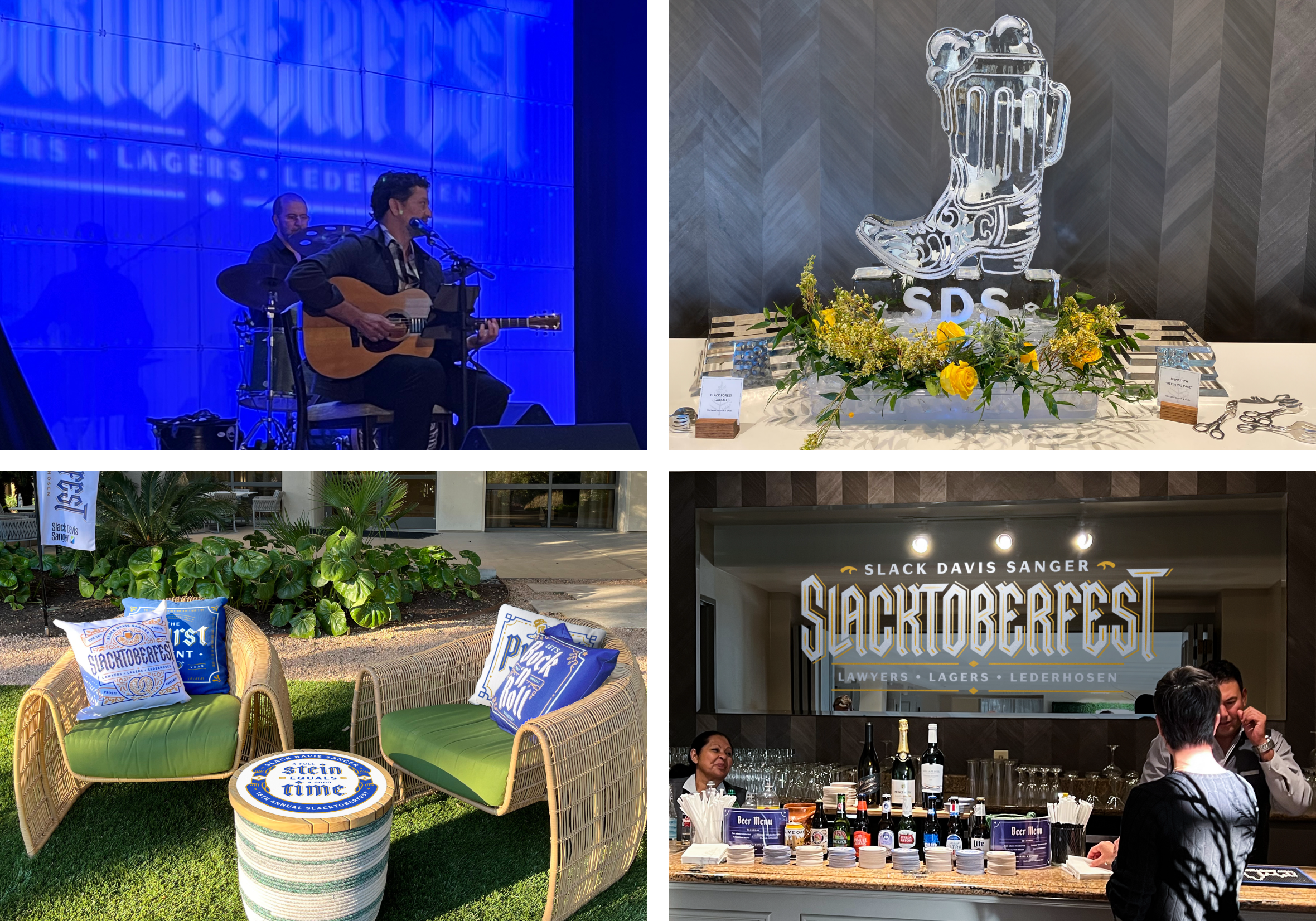 From custom pillows and coasters to an ice sculpture and barrel highboys, the Slacktoberfest experience was as immersive as it was memorable. Our deliverables included print and digital invitations, VIP 3D gift box invitation, social posts and emails, a photobooth and signage, as well as authentic German food, bier, and polka bands.